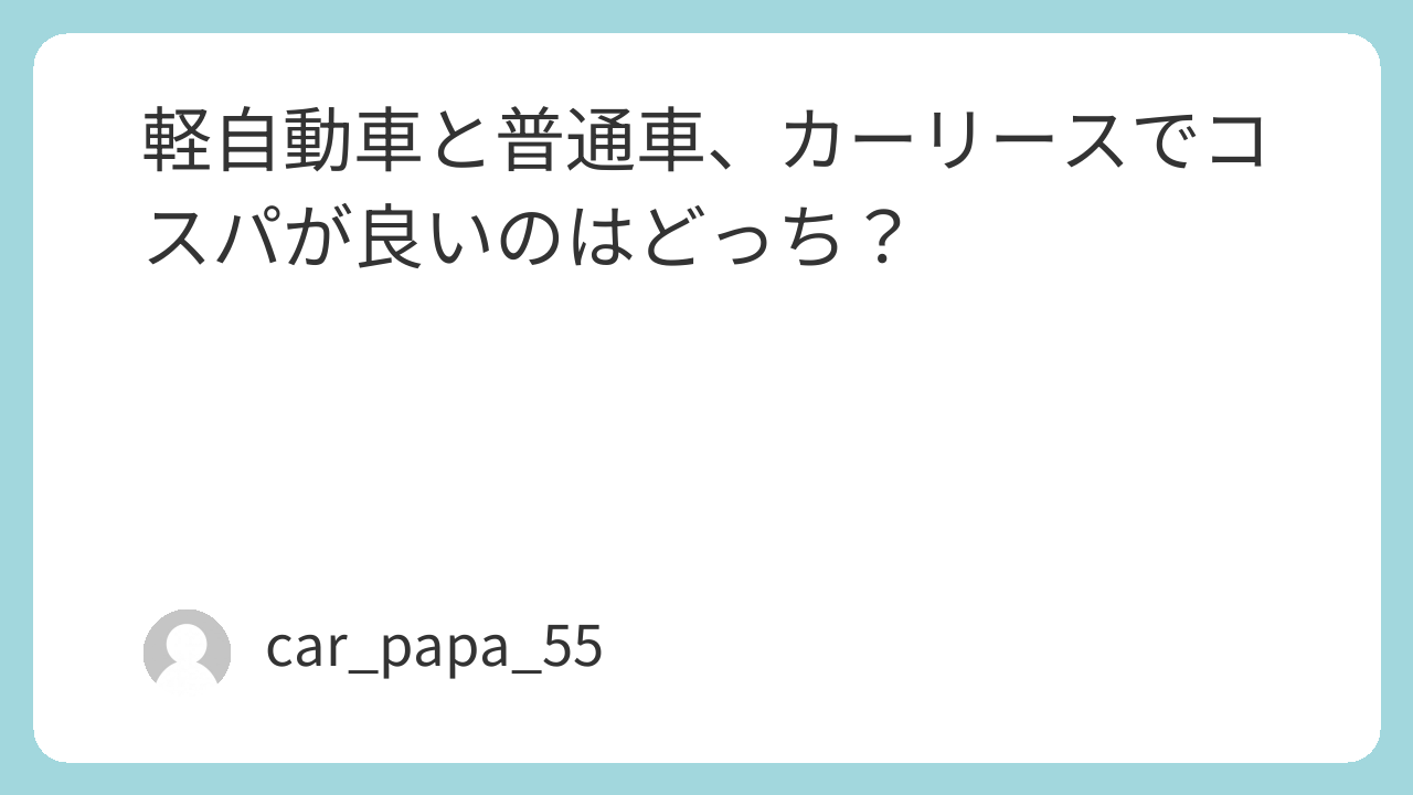 - 任意保険(自動車保険)の料金:ここが一番忘れがちです!リース料金が同じでも、普通車の方が任意保険料は高く設定されています。この「見えないお金」もしっかり計算に入れておくことが大切です。