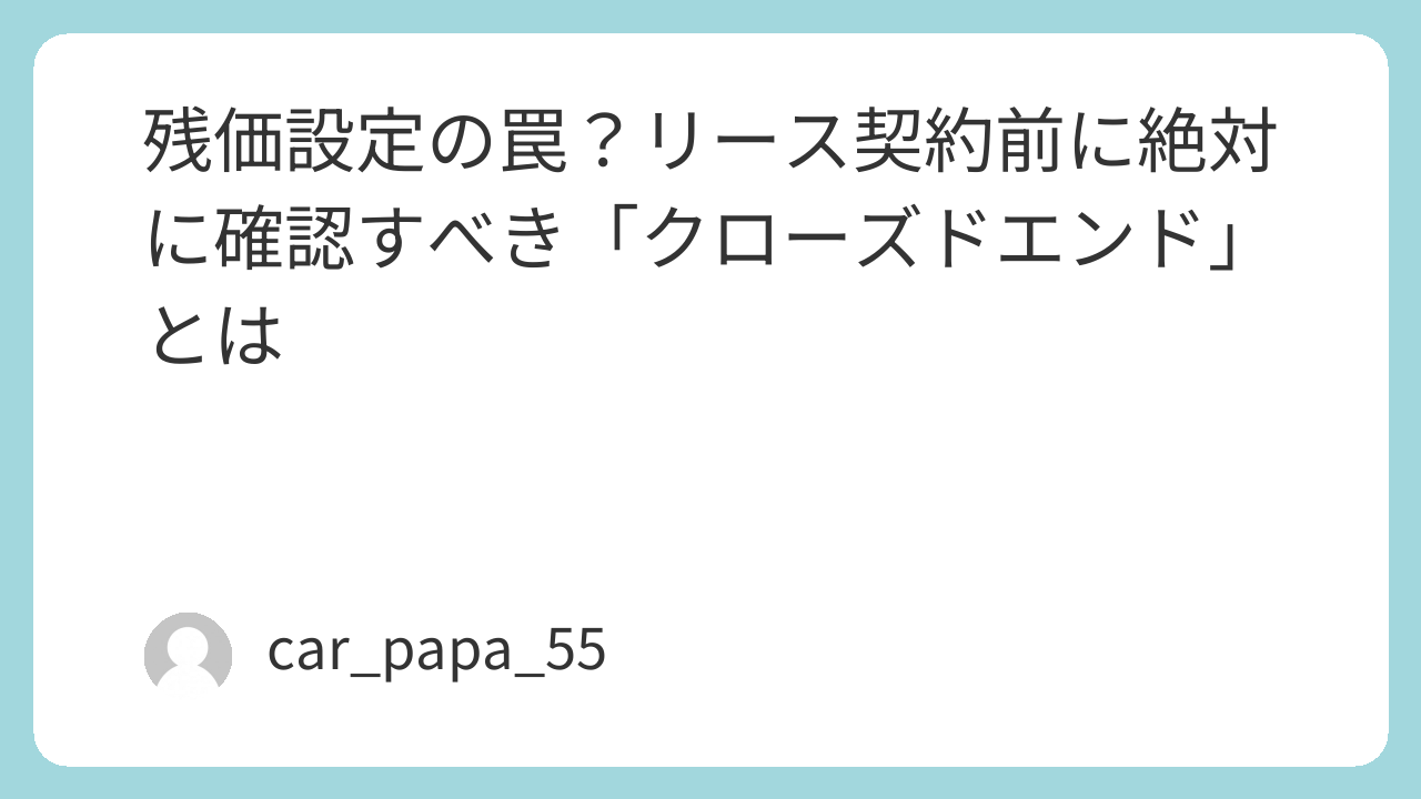 残価設定の罠?リース契約前に絶対に確認すべき「クローズドエンド」とは