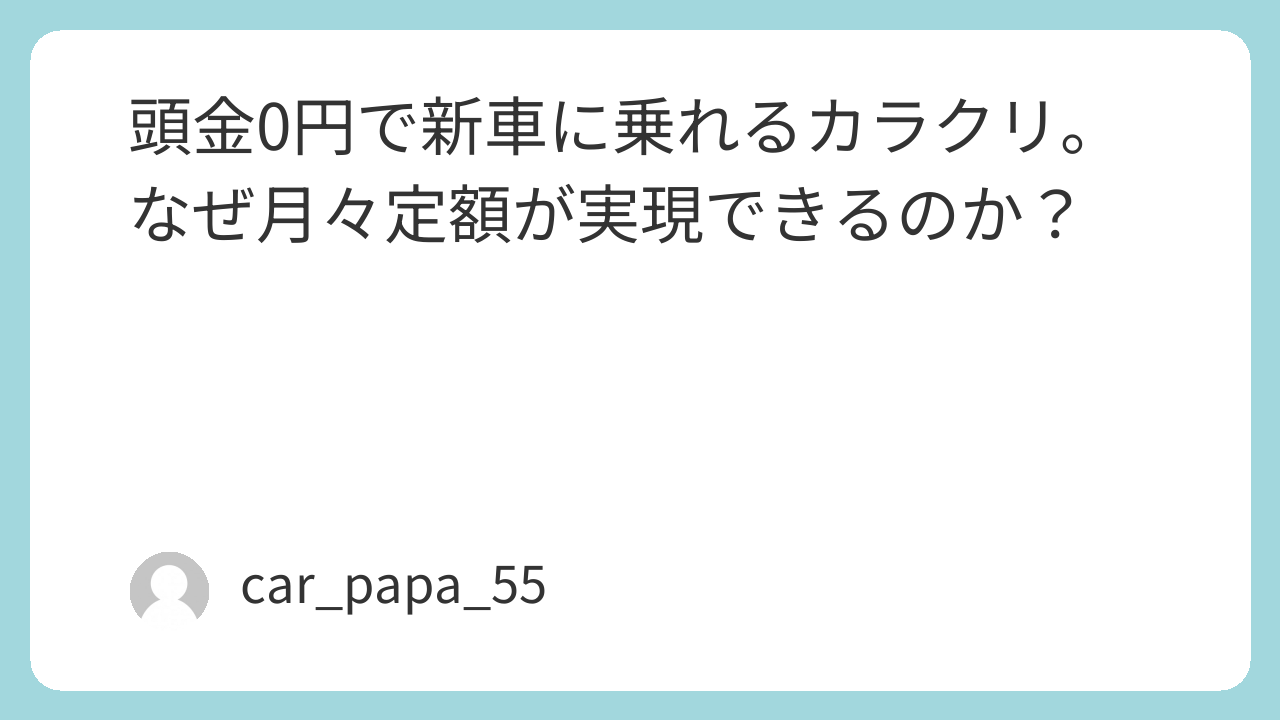「新車に乗るのに頭金が0円なんて、なんだか怪しい…」そう思う方も多いかもしれません。でも実は、これにはとてもシンプルで理にかなったカラクリがあります。それは車の「数年後の価値」をあらかじめ引いているからです。
