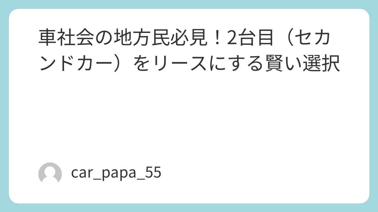 家族で2台以上が必要な地方こそ、セカンドカーにリースが効く理由